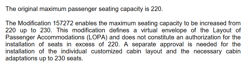 EASA TCDS에 따르면(FAA도 마찬가지) A321의 최대 좌석 수는 220석이었다.