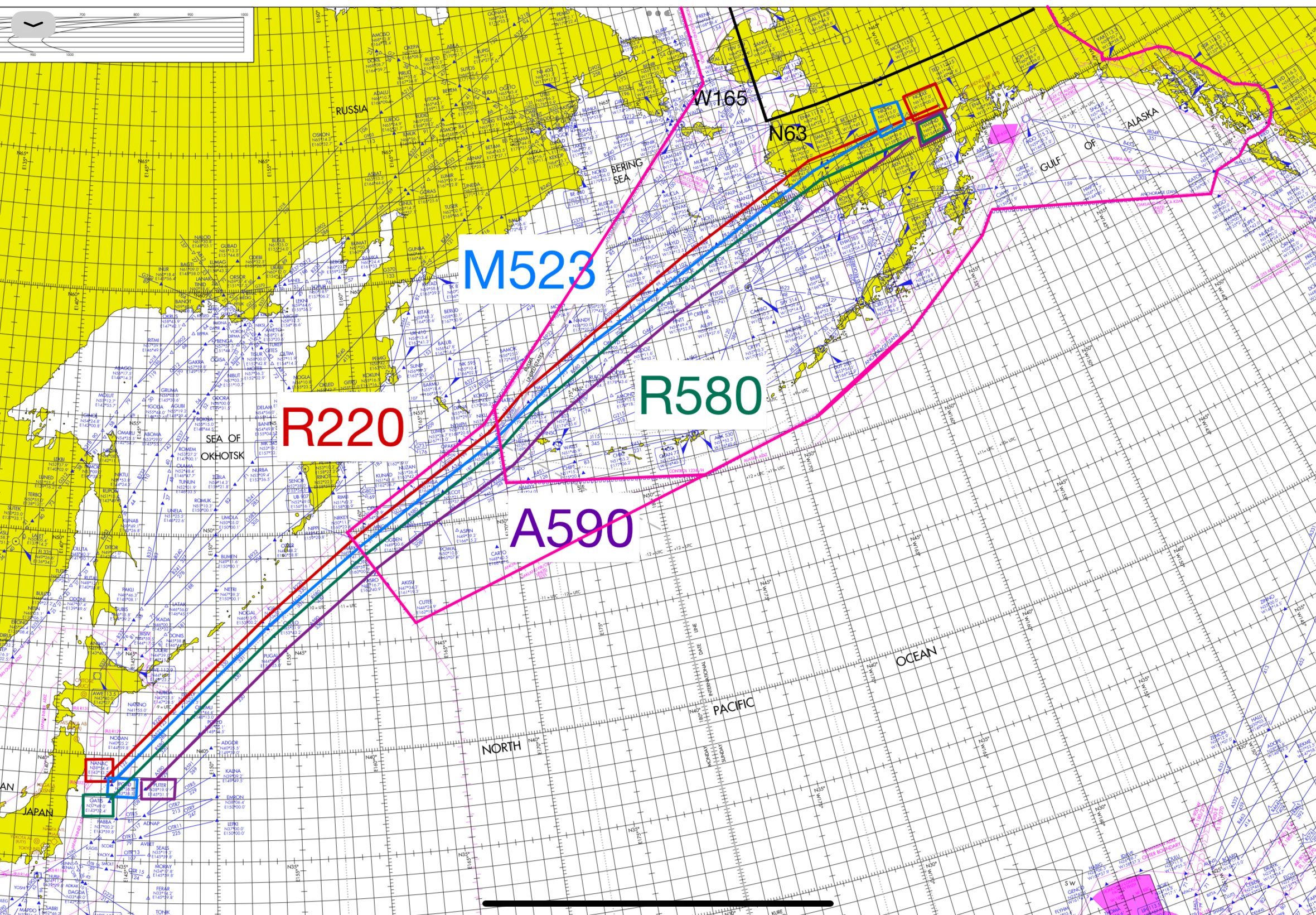 FAA Digital - Chart Supplenment (d-CS) CS AK를 기준으로 작성되었습니다. 앵커리지 Oceanic과 Domestic FIR에서 서경 165도 서쪽과 북위 63도 남쪽에서 IFR 비행을 계획하는 경우 PAZAZQZX와 PAZNZQZX에 비행계획을 제출해야한다. 두 AFTN 주소를 모두 입력하지 않으면 ATS 서비스가 지연될 수 있다.핑크색 선으로 나타낸 것이 앵커리지 Oceanic과 Domestic FIR의 경계이고, 검은색 선으로 나타낸 것이 서경 165도와 북위63도의 선이다.RVSM 운항을 승인 받은 경우 운영자는 ICAO 비행계획서 ITEM 10에 'W'를 입력해야한다.RNP 운항을 승인 받은 경우 운영자는 ICAO 비행계획서 ITEM 10에 'R'을 입력해야한다...